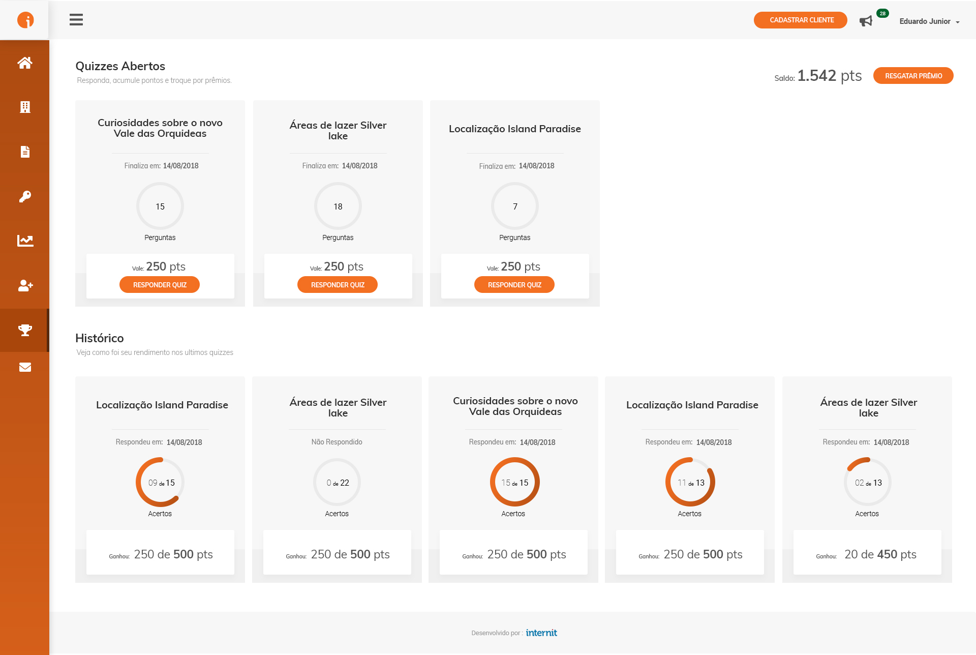 Aprenda mais sobre todos os empreendimentos de maneira divertida com nosso Quiz e a cada resposta acertada você ganha pontos que podem ser trocados por prêmios exclusivos. Troque seus pontos por prêmios!